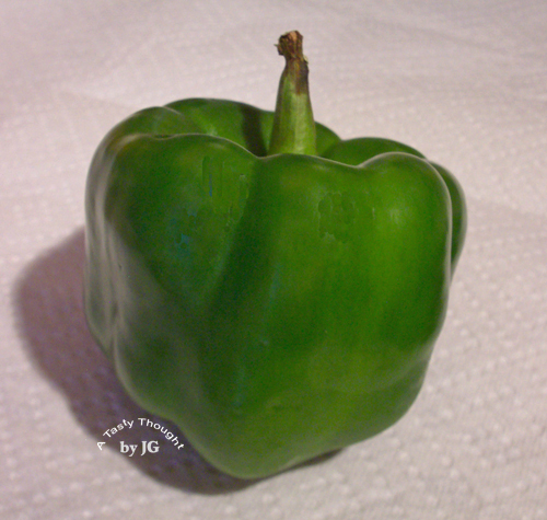 (Usually, I place one veggie in the Slow Cooker's pot and then add the meat/chicken. The pot has a nonstick surface, but I use this precaution, so the browned Ground Beef, in this case, will not become crispy on the bottom. Green Pepper chunks that have been defrosted from my freezer stash are placed on the bottom.)