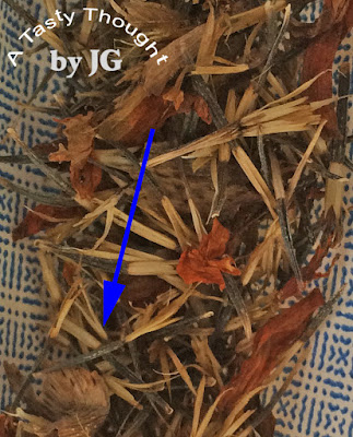 - Look for the dried blossoms on the Marigold plants (in lower left photo above).